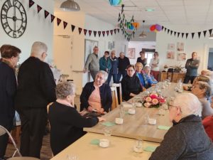 Le Mercredi 2 Avril 2025 (la journée de l’autisme), les résidentes ont confectionné des rectangles tissés pour créer une écharpe solidaire pour l’association « Autiste sans frontière 79 », Sandrine Marchand (bénévole de l’association) était présente à chaque atelier. Avec la participation d’autres établissements pour personnes âgées et d’enfants. L’écharpe fait 39 mètres avec 650 rectangles tissés. Les Résidentes ont aimé participer à ces ateliers.